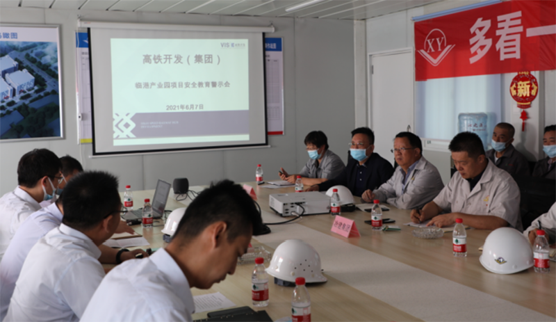 2021年6月是第20個全國“安全生產(chǎn)月”,主題為“落實安全責任,推動安全發(fā)展”。近日,高鐵集團組織施工、監(jiān)理單位主要負責人在臨港產(chǎn)業(yè)園施工現(xiàn)場會議室召開安全教育警示會,目的是給參建各方一個安全警示和警醒,為下步復工復產(chǎn)安全生產(chǎn)提供一個安全工作的平臺,同時也是給各方管理人員緊緊弦、鼓鼓勁。