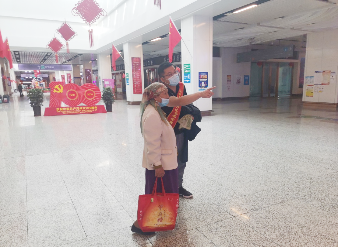 新城投資公司的志愿者們沿著高鐵北廣場車站口一路延續(xù)到地下廣場,積極為身邊穿行的游客引導(dǎo)路線、解決游客的小困難。有的志愿者協(xié)助旅客搬運(yùn)大件行李、有的志愿者提醒市民帶好口罩。志愿者符文彬一手幫旅客提著行李箱,一邊微笑著向旅客宣傳著習(xí)總書記“七一”講話精神,旅客也開心地同他攀談,敘述著當(dāng)下我們切身感受到的這座城市、各個(gè)民族的共同繁榮。