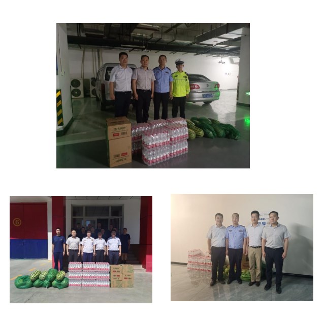 一聲問候、一份清涼。為全力支持高鐵片區(qū)烏魯木齊站南北廣場及其周邊的安保工作,幫助執(zhí)勤人員緩解夏季的高溫影響,高鐵開發(fā)集團(tuán)主要領(lǐng)導(dǎo)走訪慰問了高鐵片區(qū)派出所、消防隊(duì)、交警大隊(duì)和治安大隊(duì),為他們送上了礦泉水、西瓜等慰問品,同時(shí)為烏魯木齊站街道贈(zèng)送了遮陽傘65把,并對他們?yōu)楦哞F片區(qū)經(jīng)濟(jì)社會(huì)發(fā)展、人民安居樂業(yè)作出的貢獻(xiàn)表示崇高的敬意和衷心的感謝。